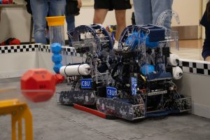 VEX Robotics is an international robotics competition for a wide range of ages. CBU competes in the VEX U division, the university level of VEX competitions. More than 350 teams participate every year, beginning with regional competitions which culminate with the World Championship. Although the game changes annually, the main principles remain the same–each VEX U team builds two robots to compete in a sports-like event (learn more about this year’s game, Push Back, here). Facing another team, strategy is imperative during both the competition and the months prior throughout the engineering design process. VEX Robotics was launched in 2004, and CBU Robotics is embarking on their fourth competitive season having achieved multiple awards, including mechanical recognition at the 2024-2025 World Championship.